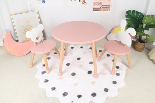 Beren- en Konijnenstoeltje en Ronde tafeltje | Kinderstoeltjes | Roze/Wit