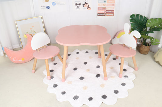 Konijnen- en Paddenstoeltje en Bloementafeltje | Kinderstoeltjes | Roze/Wit