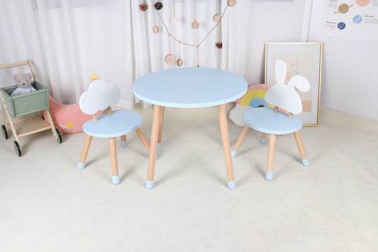 Wolken- en Konijnenstoeltje en Ronde tafeltje | Kinderstoeltjes | Blauw/Wit